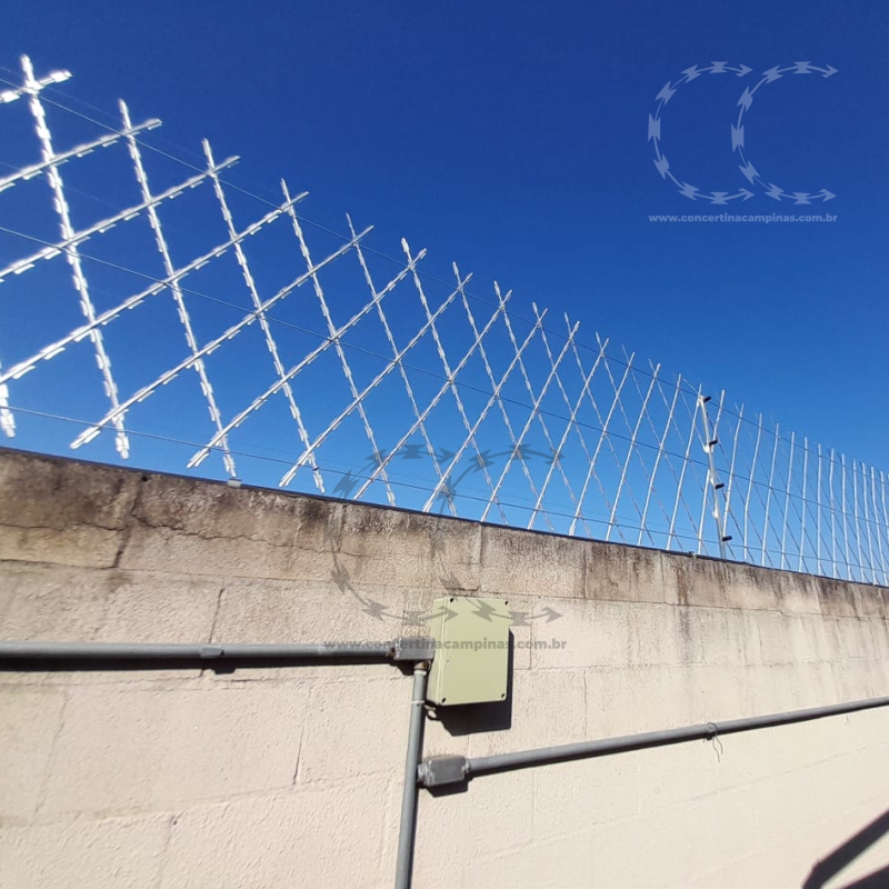 -Esta cerca é fabricada com o mesmo material da cerca concertina, elas se diferenciam no formato(vertical), altura e estética. Muito utilizada por prédios e condomínios.